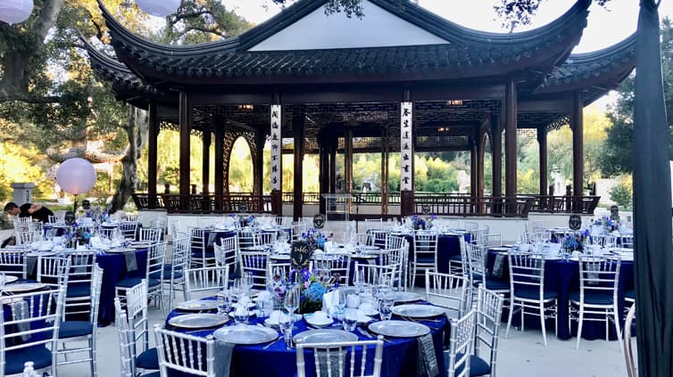 The Chinese Garden’s North Courtyard, also known as the Court of Assembled Worthies, is a grand setting for a large, elegant banquet.
