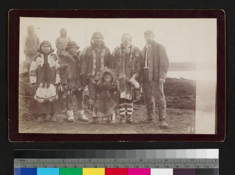 Alaska natives, possibly a family, with two Caucasian men