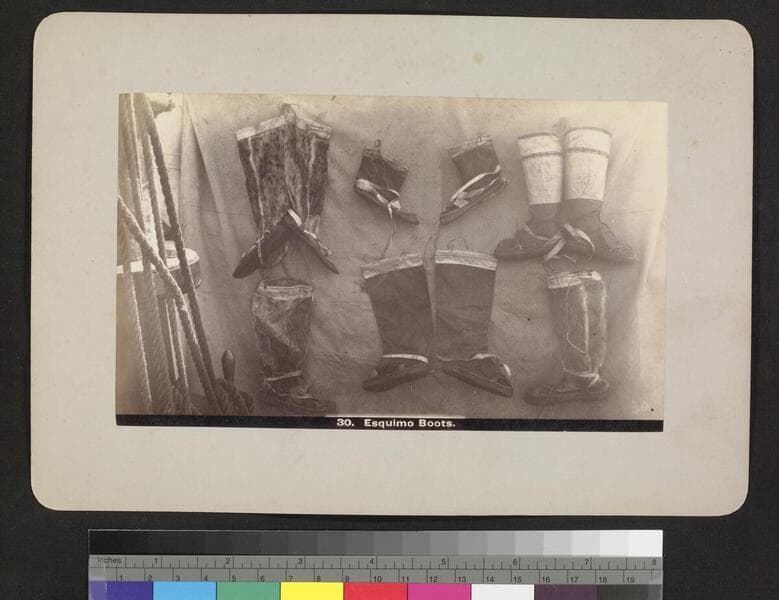 Esquimo [Eskimo] boots & shoes and snow shoes [Taber, photographer]