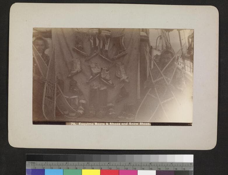 Esquimo [Eskimo] boots & shoes and snow shoes [Taber, photographer]