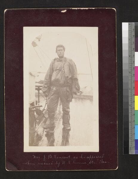 Mr. J.B. Vincent as he appeared when rescued by U.S. Revenue Str. [Steamer] "Bear" [Has copy negative]
