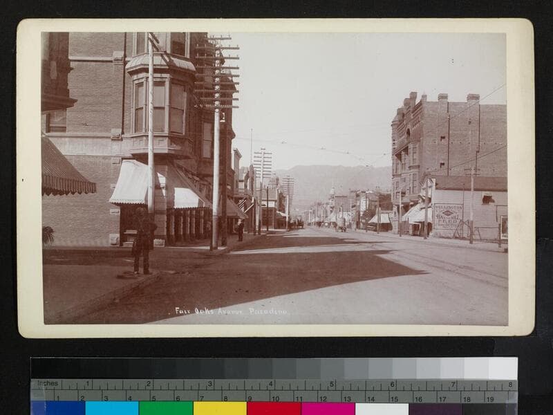 Street view of the corner of Colorado and Fair Oaks looking south on Fair Oaks toward the Green Hotel.