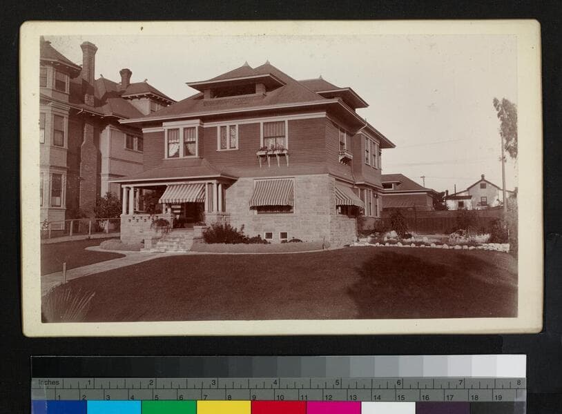This collection of William H. Fletcher commercial card photographs focus mainly on Los Angeles, California, during a period of industrial expansion and population growth in the late 1800s. The images depict various views around Los Angeles, which include Los Angeles Street and some of its intersections, the Main and Spring Streets junction, Old Chinatown, the College of Medicine at University of Southern California (in its second incarnation on Buena Vista Street, now North Broadway), Llewellyn Iron Works, Elysian Park, the Hollenbeck Home for retirees, and what may be William H. Fletcher's residence (see item 6). Also included are photographs of Colorado Boulevard, Fair Oaks Avenue, and Devil's Gate in Pasadena; the Los Angeles River; the Hotel Arcadia in Santa Monica; the Point Fermin Lighthouse in San Pedro; Ventura; Redondo Beach; and the California missions San Luis Rey, San Juan Capistrano, and San Fernando Rey.