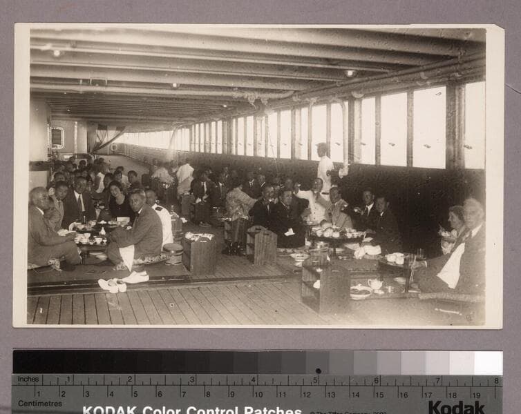 Sukiyaki on deck. Aboard the ship Taiyo Maru