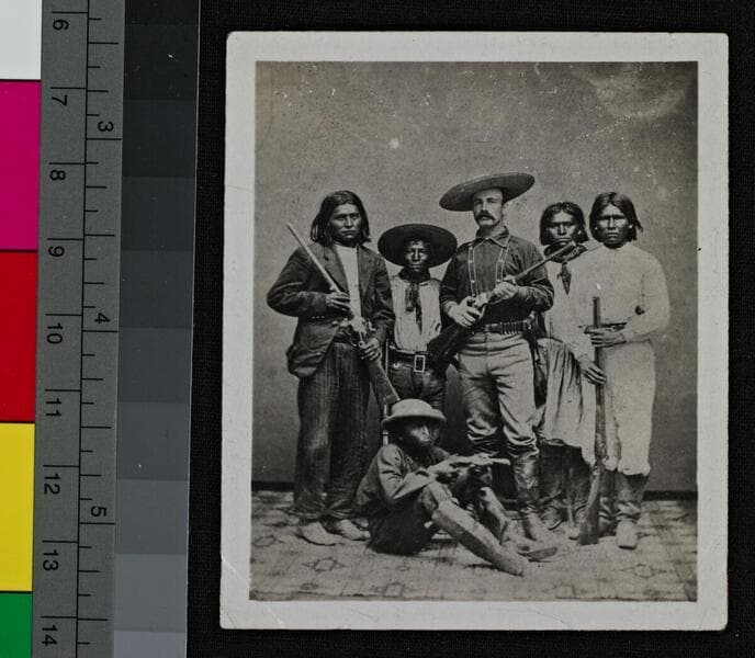 John P. Clum, Indian agent, with Apache scouts at Tucson, Arizona, October 1874