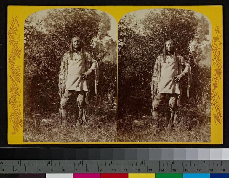 Image of John Wesley Powell, right, and Paiute Indian called Taú-gu.