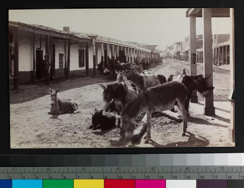 24 cabinet cards with portraits, city scenes, and a few landscape views depicting Indian camps and the surrounding countryside. The 8 studio portraits include Native American men, women, and children in both traditional and Western dress and include Apache and Pueblo Indians, with individuals from the Tesuque Pueblo. The city scenes show locales in Santa Fe, New Mexico, and one depicts a Catholic religious demonstration on a Santa Fe street. There are also 4 views of burros. Most views are unidentified, but some contain printed or handwritten titles: Apache Girl - Indian School (photPF 20751); 229. Pueblo Senora from Tesuque (photPF 20754); 228. Pueblo Indian and daughter (photPF 20755); College Street, Santa Fe, N.M. (photPF 20764); Territorial Capitol, Santa Fe, N.M. (photPF 20765); Our Lady of the Rosary [Santa Fe] (photPF 20767); House of Representatives (photPF 20767); 215. A medley: scenes in Santa Fe, N.M. [of burros], May 1887 (photPF 20772); Guadalupe Church (photPF 20773).