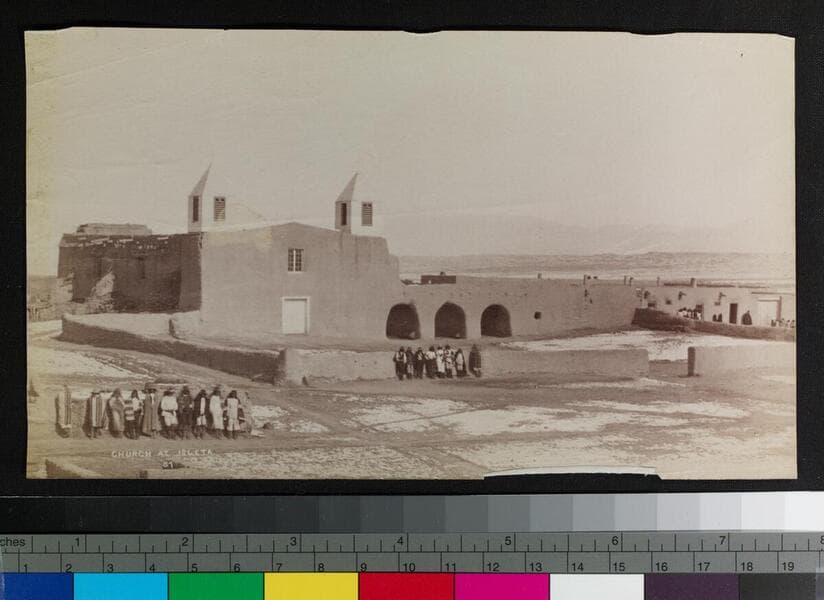 Image of the Pueblo of Isleta, a church can be seen in the background.