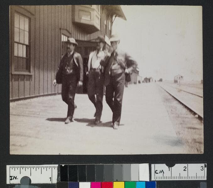 Unidentified scene, possibly in Arizona. Signs say "J. K. Ross Restaurant" and "Variety Store."