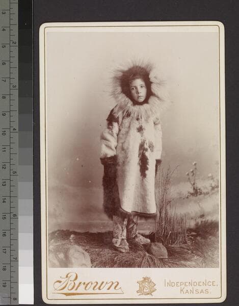 Studio portrait of a girl dressed in Native Alaskan attire.