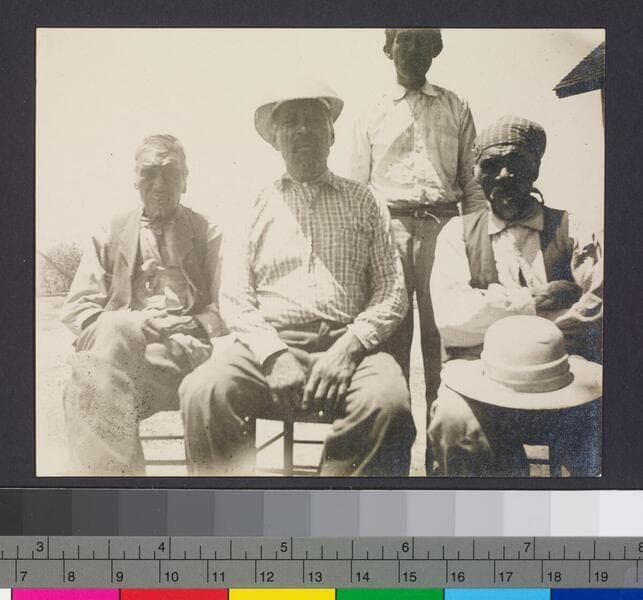 Photo of seated native men in native clothing.