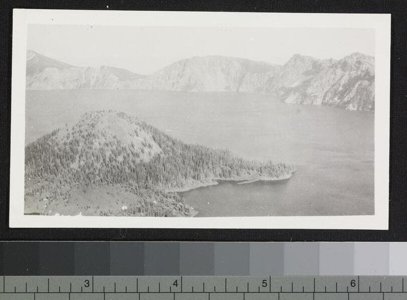Photo of a lake and its surrounding mountains, snow, and trees.