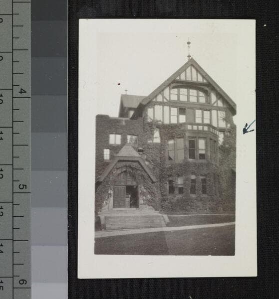 Photo of a large ornate building in the distance with rows of trees leading to it.