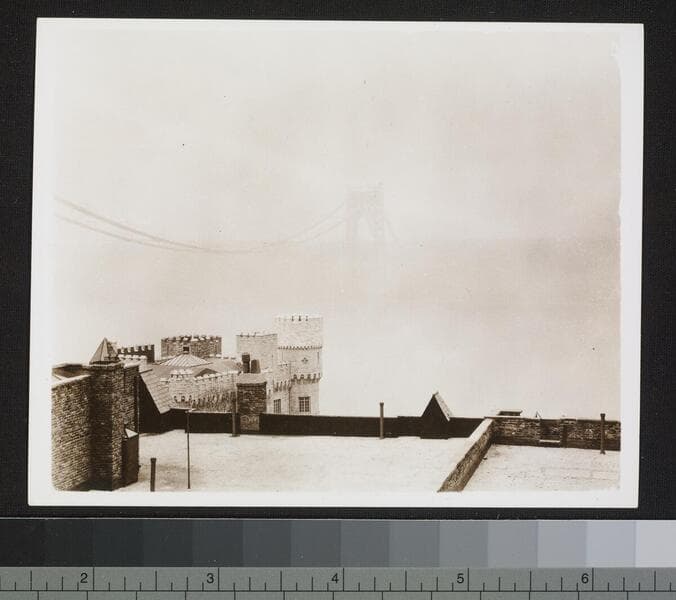 Photo of an unfinished George Washington Bridge over the Hudson.