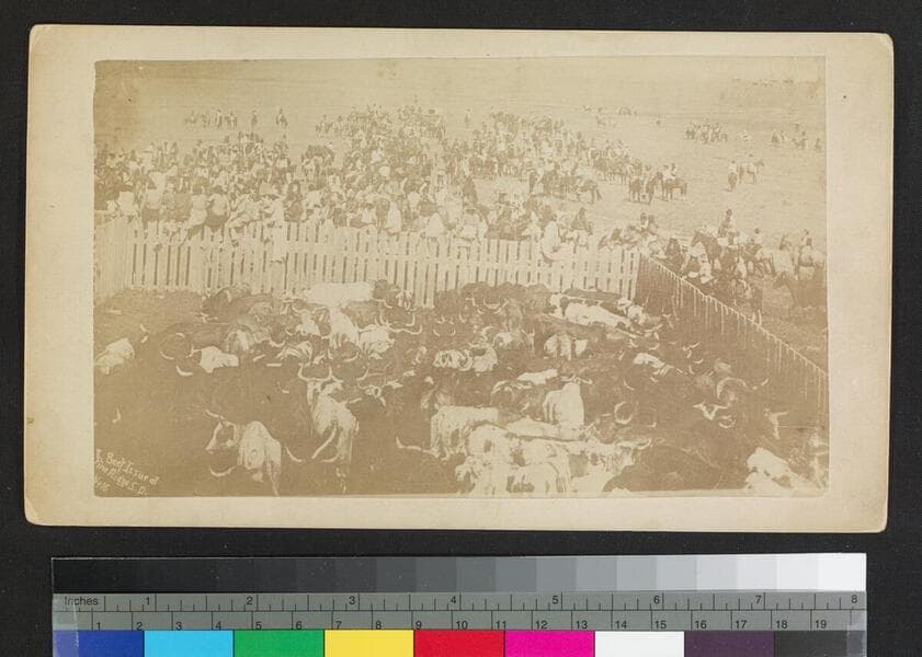 Grand Council between Friendly and Hostile Indian Chiefs at Pine Ridge Agency, S.D. Jan. 17, 1891. Chief Kicking Bear talking