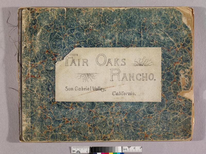 This collection consists of one photograph album with 48 photographs and 35 loose photographs (as well as some duplicates), with images depicting the Fair Oaks Ranch in Altadena, California, during the late 19th century. The ranch, owned by businessman and rancher James F. Crank, encompassed a vineyard, winery, and citrus orchards, along with a lavish residence and grounds. Subjects include interior and exterior views of the residence, landscaped grounds, trees, and plant life; members of the Crank family; ranch workers, including Chinese laborers, working in the orchards and vineyard, harvesting and packing fruit, drying apricots, and loading fruit onto horse-drawn carts; workers' quarters; the operations of the winery and distillery; and also a handful of sweeping views of the San Gabriel Mountains and the Altadena and Pasadena areas taken from vantage points on the property. The photographer of the album is unknown; some of the cabinet cards and stereographs have imprints from area photographers: C. McMurtrey (Item 80), C.B. Ripley (Items 73-74), and A.C. Varela (Items 76-78). Photographs in the album are cyanotype prints; the loose photographs include cyanotypes, cabinet cards, and stereographs.
