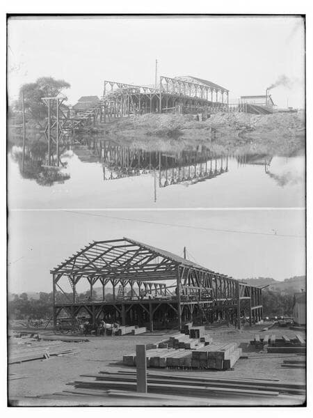 Construction, Yosemite Lumber Company mill, Merced Falls, Merced County (two views)