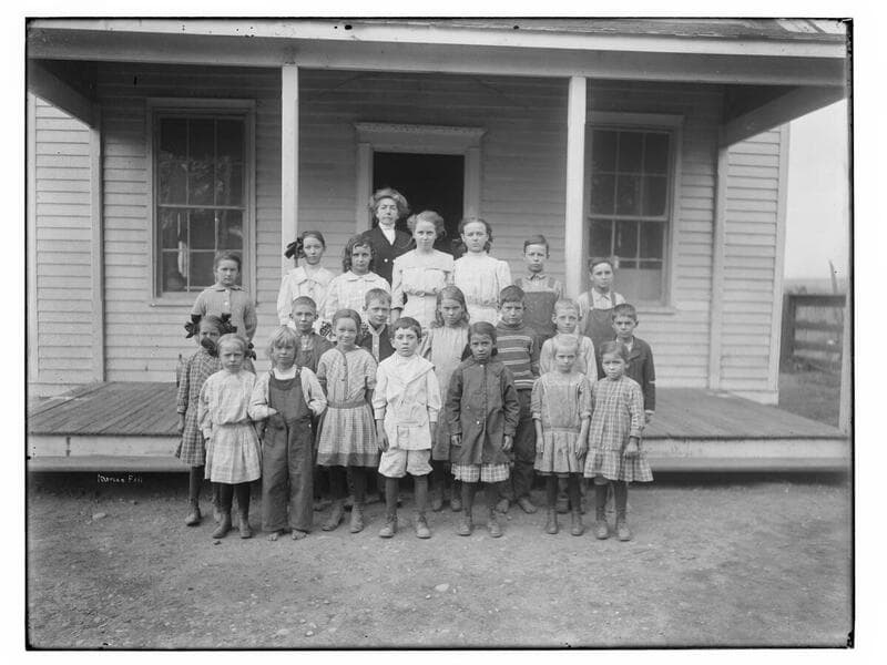 Children in front of a school in Merced Falls, Merced County