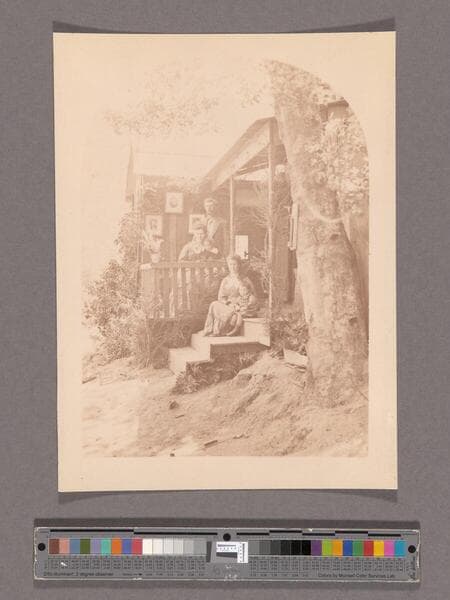 The operator's cottage at the Puente Substation, showing a couple sitting on the porch.
