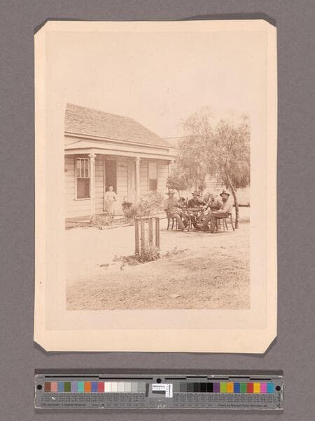 This collection contains 430 albumen photographs by photographer Carleton E. Watkins that chiefly depict buildings, points of interest, and locales in Northern and Southern California in the 1870s and 1880s, as well as 223 card photographs by photographer Alfred A. Hart documenting the construction of the western half of the transcontinental railroad by the Central Pacific Railroad (CPRR) in the 1860s, which were later published by Watkins under his own imprint. Images by Watkins depict locations in Arizona and California including: Lake Tahoe, Los Angeles, the Mammoth Tree Grove, Paso Robles, San Bernardino, San Diego, San Gabriel, San Luis Obispo, San Pedro, Santa Monica, Soda Springs, Wilmington, and Yosemite, as well as views related to the Southern Pacific Railroad and of the Colorado River. There are a few images of Native Americans in Arizona and California, and several images related to trains and railroads. The photographs have been removed from the original album, which is a large leather album with brass bindings (Box 10). There are some handwritten identifications in the album pages, most likely written after if was received by the Library.