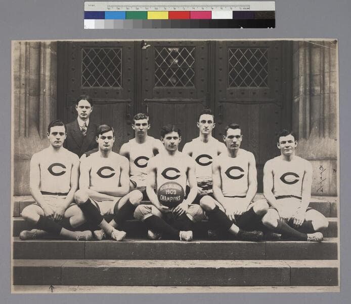 Edwin Powell Hubble (far left) with the University of Chicago basketball team, 1909