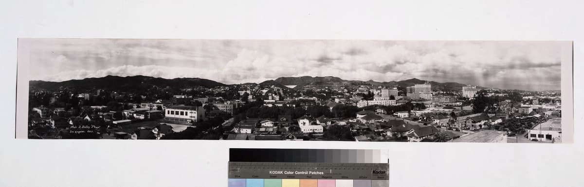 This is a collection primarily of negatives and photographic prints depicting the growth of Santa Monica and Los Angeles, California, from 1860s to 1980s. Many views are cityscapes or street views, showing buildings, storefronts, homes and roads, and documenting the use of railroads, trolleys, streetcars, and automobiles. There are many card photographs by early professional photographers, and also a number of snapshots made by amateurs, some in personal photo albums. The collection's scope also includes early views of many other communities in Southern California (and a few in other states); the beginnings of aviation in Santa Monica, including the first Douglas Aircraft Company buildings; a photo album of residents in Topanga Canyon, ca. 1913; automobile racing in Los Angeles and Santa Monica, 1920s; maritime views; a photo album of U.S. troops in France during World War I; a 1949 real estate development in Apple Valley, California, and others. Besides photographs, a portion of the collection consists of scarce publications and historical ephemera, primarily related to Santa Monica and Los Angeles, including brochures, advertising cards, menus, event programs and other materials. Highlights of the Santa Monica images are aerial views of the buildings along the coast and pier (1920s); several views of the Arcadia Hotel (1880s); the Long Wharf and adjoining railroad and train depot; the first bath houses on the beach; the beach club culture of the 1920s and 1930s; the amusement piers of Santa Monica, Ocean Park and Venice; and the beginnings of the Douglas Aircraft Company. There is a large set of promotional photographs made late 1920s-1930s by Powell Press Service depicting people enjoying Santa Monica's beaches, clubs and outdoor recreation. An important subset within the collection is 407 negatives made ca. 1890 - 1908 by Los Angeles historian and amateur photographer George W. Hazard (1842-1914). Hazard travelled around Los Angeles and vicinity photographing the adobes, houses, streets and storefronts that told the early history of the city. Many of Hazard's negatives have handwritten identifications, naming streets, former homeowners, ranchos, and other historical details. There are a large number of cabinet cards and other card-mounted prints and stereographs. There are 1,264 stereograph prints, highlighted by the works of photographic pioneers William M. Godfrey, Francis Parker, Hayward & Muzzall, and Carleton Watkins. Other formats represented are: glass and film negatives; panoramic prints; 7 photograph albums, photographic postcards, 20th-century color prints and transparencies; and a small number of tintypes, cyanotypes and a set of chromolithographs.