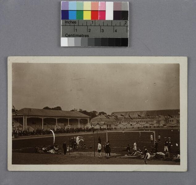 Edwin Powell Hubble jumping the high jump in Oxford, England
