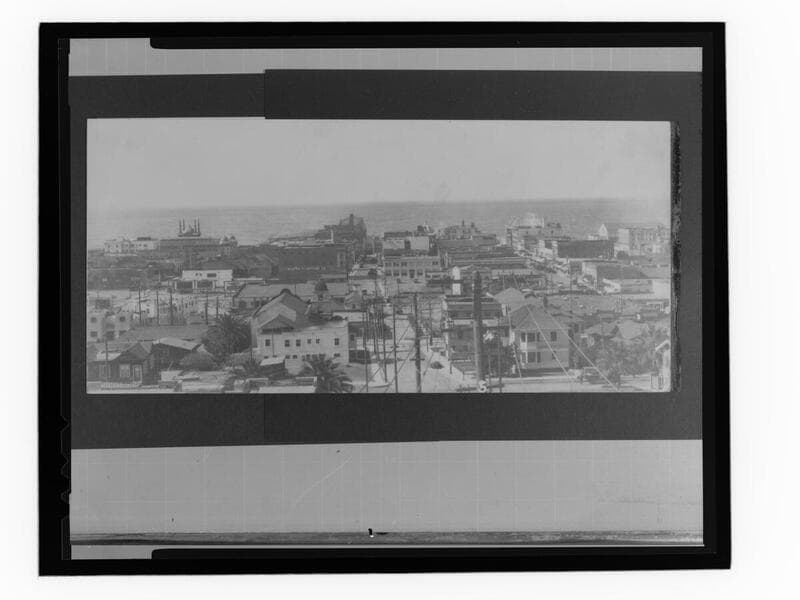 Aerial view of Pickering and Lick Piers, Ocean Park, California