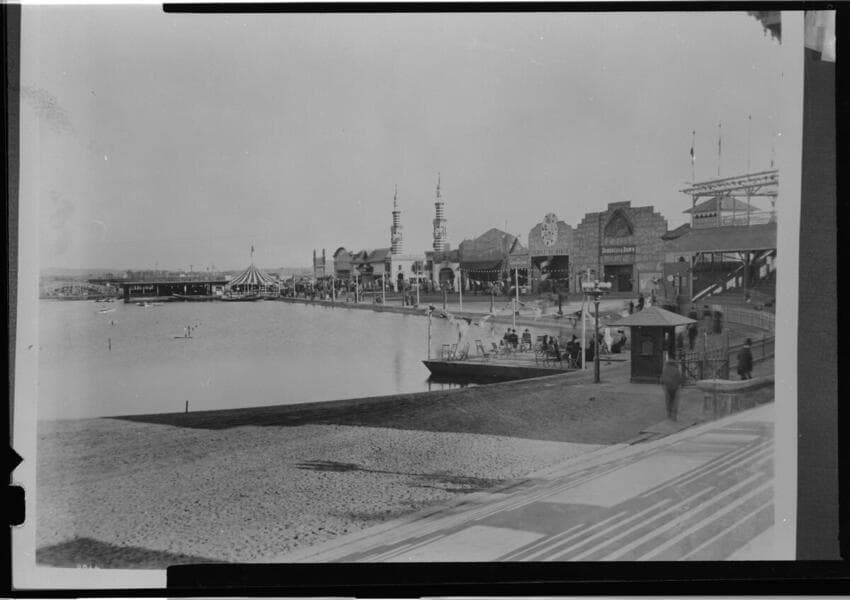 "Race Thru the Clouds" roller coaster and lagoon, Venice, California