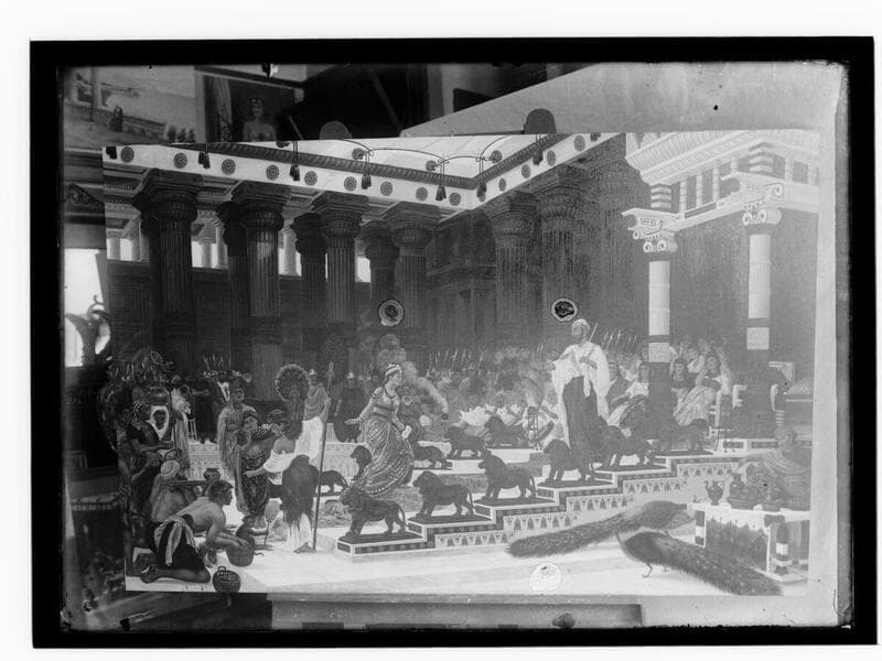 One painting book entitled Animals to Paint, published by the Saalfield Publishing Co., Akron, Ohio, 1910. The front cover of the book depicts a lion family; the name "Gerald" is written in ms., in pencil in the upper left-hand corner. The book consists of twenty-four outline images. The first page describes the book as: "a paint book for boys and girls which supplies sketches ready to color." and gives instructions on the use of watercolor. There book consists of twenty-four images of various animals, six of which have an identical color image meant to guide the student in the use of color. Most of the images have been filled in with crayon rather then watercolor.