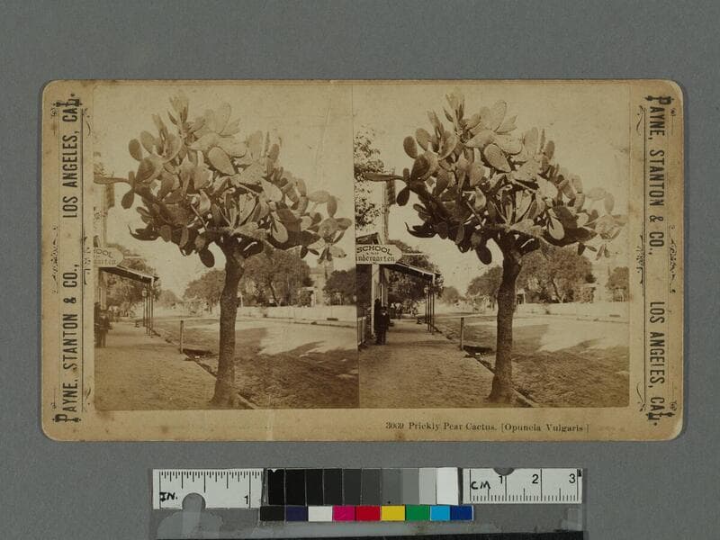 Image of photographer Harry Frantz Rile, standing next to a prickly pear cactus bearing fruit in Santa Monica, California.