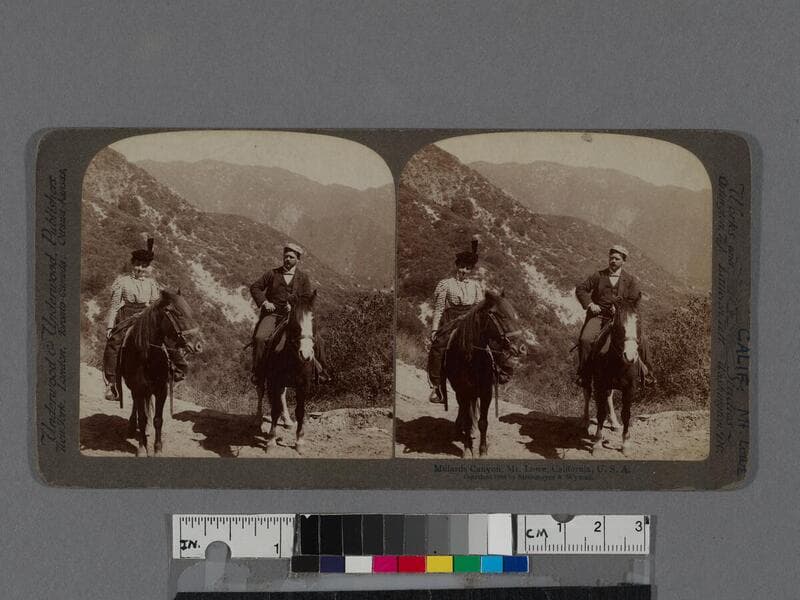 This is a collection primarily of negatives and photographic prints depicting the growth of Santa Monica and Los Angeles, California, from 1860s to 1980s. Many views are cityscapes or street views, showing buildings, storefronts, homes and roads, and documenting the use of railroads, trolleys, streetcars, and automobiles. There are many card photographs by early professional photographers, and also a number of snapshots made by amateurs, some in personal photo albums. The collection's scope also includes early views of many other communities in Southern California (and a few in other states); the beginnings of aviation in Santa Monica, including the first Douglas Aircraft Company buildings; a photo album of residents in Topanga Canyon, ca. 1913; automobile racing in Los Angeles and Santa Monica, 1920s; maritime views; a photo album of U.S. troops in France during World War I; a 1949 real estate development in Apple Valley, California, and others. Besides photographs, a portion of the collection consists of scarce publications and historical ephemera, primarily related to Santa Monica and Los Angeles, including brochures, advertising cards, menus, event programs and other materials. Highlights of the Santa Monica images are aerial views of the buildings along the coast and pier (1920s); several views of the Arcadia Hotel (1880s); the Long Wharf and adjoining railroad and train depot; the first bath houses on the beach; the beach club culture of the 1920s and 1930s; the amusement piers of Santa Monica, Ocean Park and Venice; and the beginnings of the Douglas Aircraft Company. There is a large set of promotional photographs made late 1920s-1930s by Powell Press Service depicting people enjoying Santa Monica's beaches, clubs and outdoor recreation. An important subset within the collection is 407 negatives made ca. 1890 - 1908 by Los Angeles historian and amateur photographer George W. Hazard (1842-1914). Hazard travelled around Los Angeles and vicinity photographing the adobes, houses, streets and storefronts that told the early history of the city. Many of Hazard's negatives have handwritten identifications, naming streets, former homeowners, ranchos, and other historical details. There are a large number of cabinet cards and other card-mounted prints and stereographs. There are 1,264 stereograph prints, highlighted by the works of photographic pioneers William M. Godfrey, Francis Parker, Hayward & Muzzall, and Carleton Watkins. Other formats represented are: glass and film negatives; panoramic prints; 7 photograph albums, photographic postcards, 20th-century color prints and transparencies; and a small number of tintypes, cyanotypes and a set of chromolithographs.