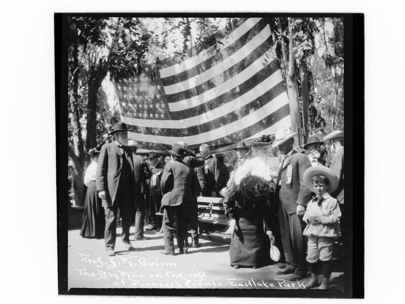 Professor J.M. Guinn, the Big Man on the left, at Pioneer's Picnic, Eastlake Park