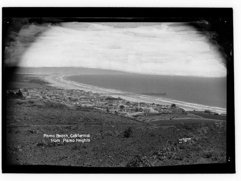 Image of a panorama of streets and homes in Pismo Beach, California, with the newly re-built pier at right.