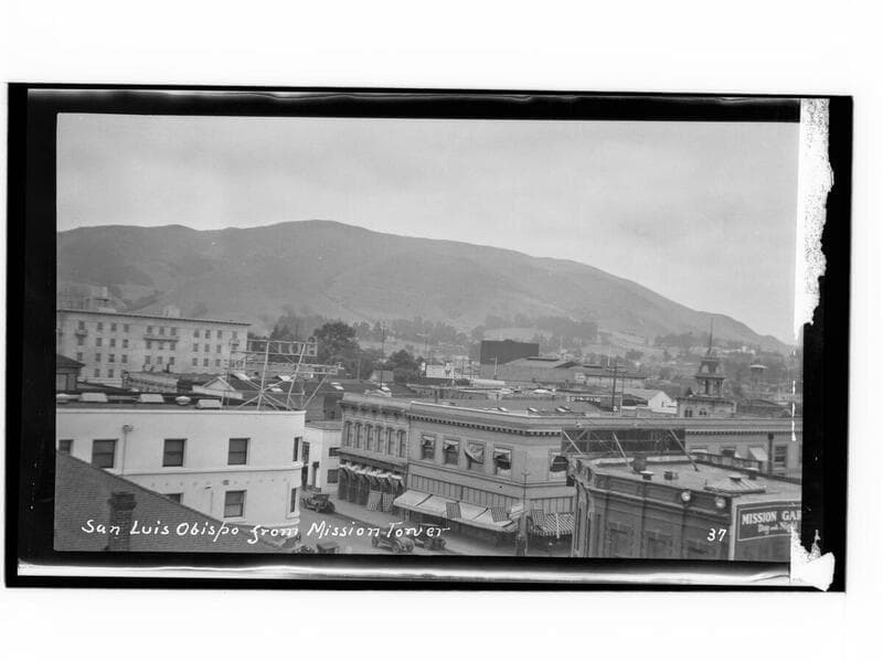 Image of the Mission School on Palm Street and the hills behind in San Luis Obispo, California.