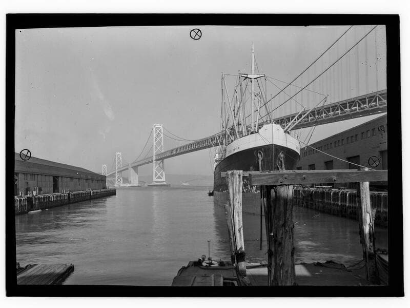 Oakland Bay Bridge with "Oregonian" at dock