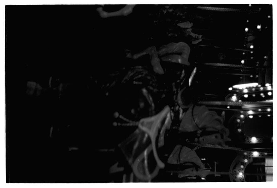 Image of carousel horses on the merry-go-round in the Looff Hippodrome at the Looff Pleasure Pier in Santa Monica, California.