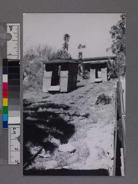 View from inside a passenger car of the Angels Flight incline railway, located at the intersection of Hill Street and Third Street in the Bunker Hill neighborhood of downtown Los Angeles, California.