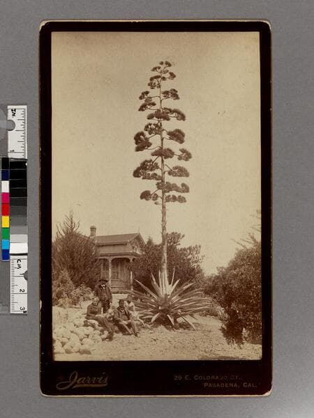 Giant flowering plant in front of house, Pasadena