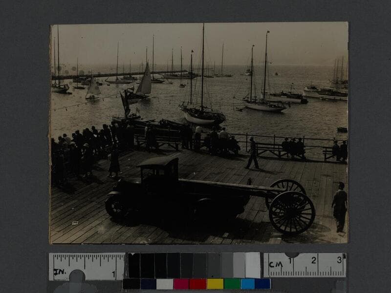 View of boats during the Yacht Harbor Breakwater dedication, Santa Monica