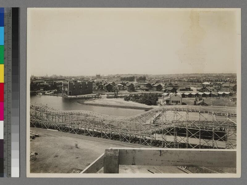 "Race Thru the Clouds" roller coaster and lagoon, Venice, California