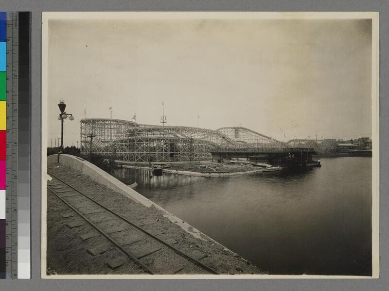 "Race Thru the Clouds" roller coaster and lagoon, Venice, California