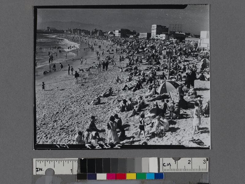 Crowds at beach, Lick Pier and Ocean Park Pier, Venice and Santa Monica