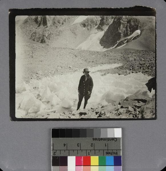 Grace Burke Hubble standing by snow at Mount Dana, California