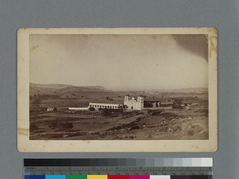 Mission Santa Barbara showing Indian quarters and surrounding country