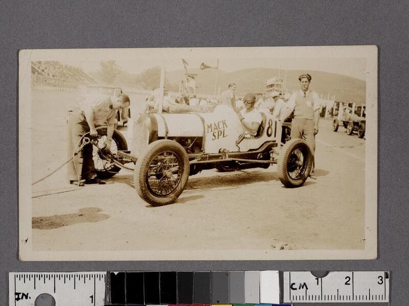 Pinky Richardson in car at Legion Ascot Speedway, Los Angeles