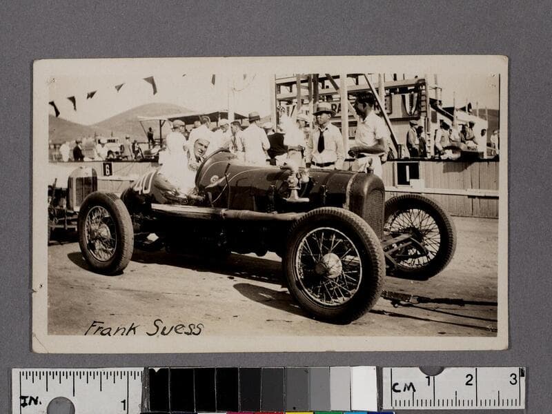 Frank Suess in car at Legion Ascot Speedway, Los Angeles