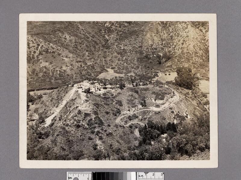 Image of the Serra Retreat in Malibu, California, on the property that was previously known as Rindge Castle, on Laudamus Hill and owned by May Knight Rindge.