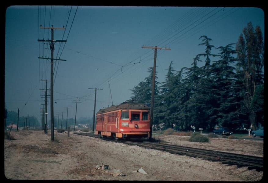 Pacific Electric Railway car after passing Rio Vista station on the Van Nuys line