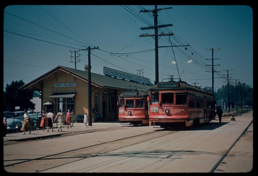 Pacific Electric Railway cars at North Hollywood station on the Van Nuys line